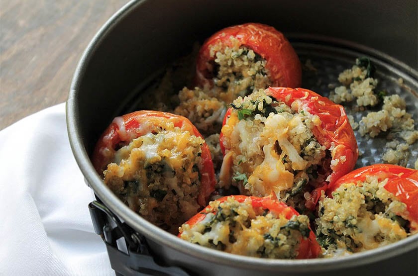 Ανακατεύουμε την κινόα με το μείγμα από τα λαχανικά μας και η γέμισή μας είναι έτοιμη.
