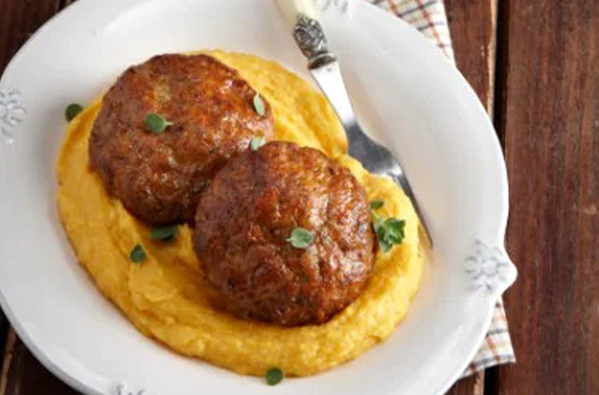 Μοσχαρίσιο μπιφτέκι με πουρέ γλυκοπατάτας